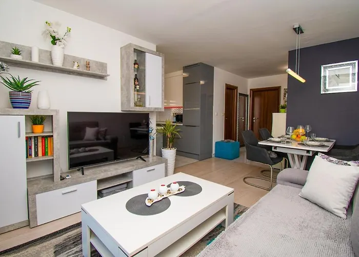 Il Modern Apartment Luka In Pula comprende un balcone e un salottino con un impianto di climatizzazione per il massimo comfort. La struttura invita gli ospiti a soggiornare in 2 camere da letto. Per una maggiore comodità, quest'alloggio dispone di un bagno alla francese e una doccia. Inoltre, il bagno vanta asciugacapelli, essiccatori e teli da bagno.